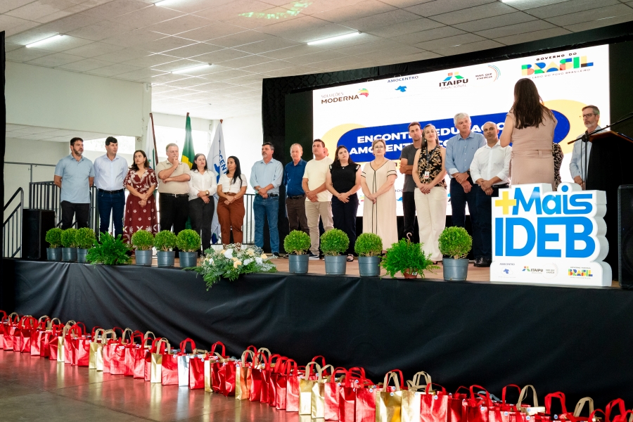 O evento também teve a participação de prefeitos, vice-prefeitos, secretários municipais da região, que destacaram como tem sido a atuação do programa ‘Amocentro Com Mais IDEB’ nos municípios após a parceira com a Itaipu Binacional, que investiu aproximadamente R$ 22 milhões através de um convênio para a aquisição de materiais didáticos para mais de 28 mil estudantes, além de capacitação e acompanhamento pedagógico para cerca de 2 mil professores de todos os municípios da Amocentro.